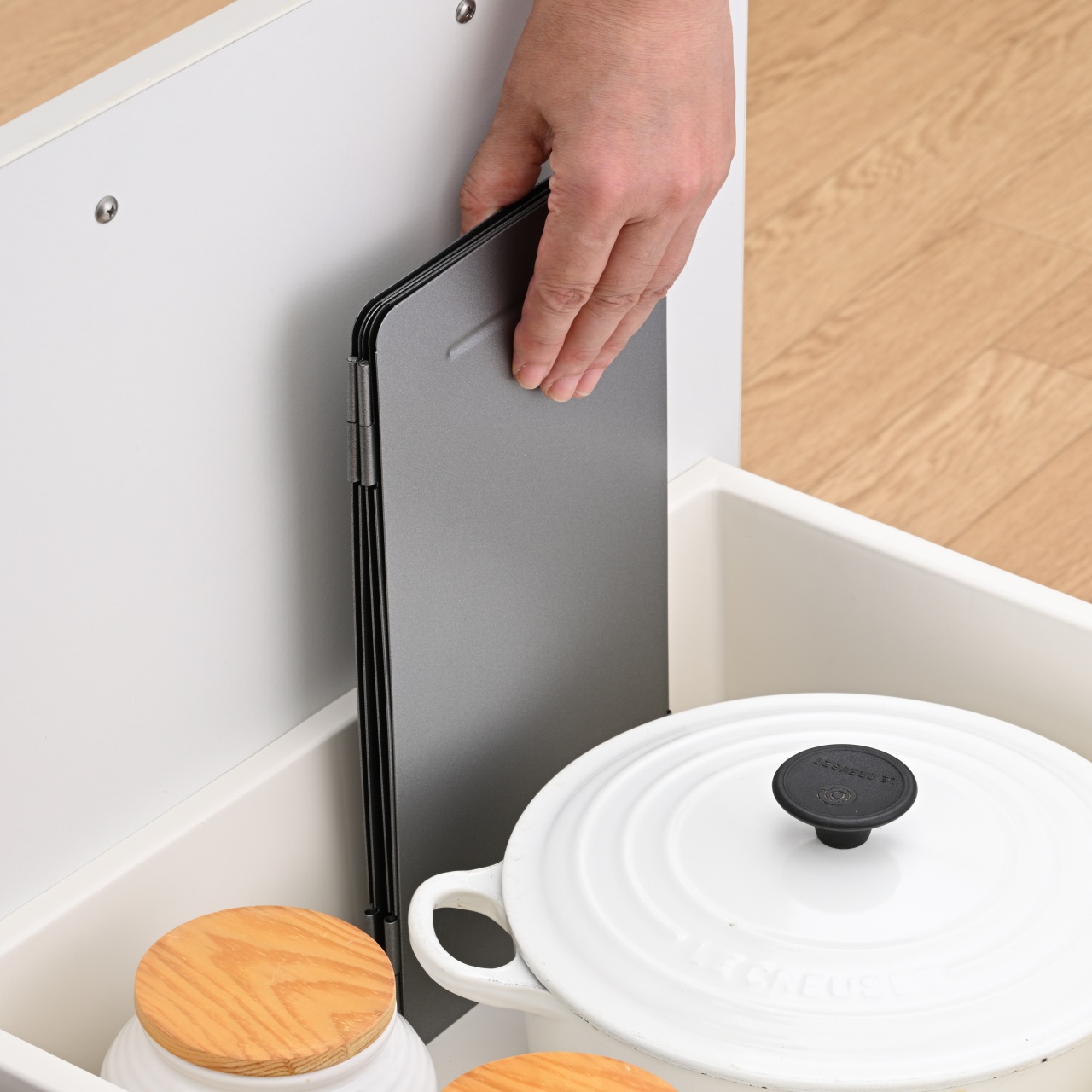 自由自在に設置できる5枚の折りたたみ式パネル。ふっ素樹脂加工なので、お手入れ簡単。折りたたんでコンパクトに収納できます。